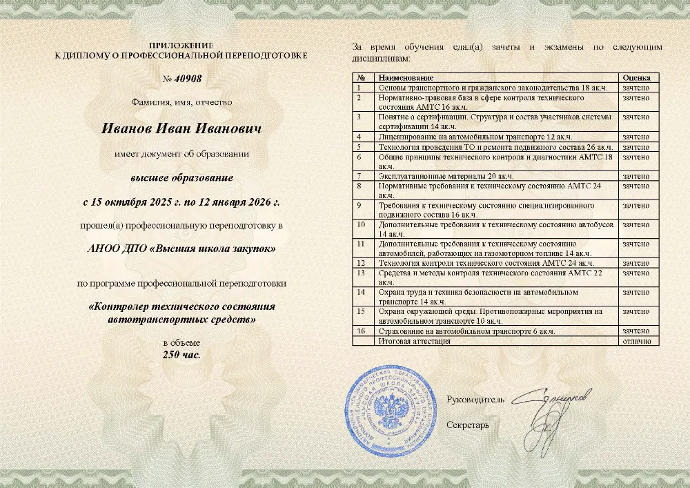 Повышение квалификации, 72 академических часа, 4 модуля: нормативные требования к техническому состоянию транспорта, технология и методы контроля, оценка состояния специализированного подвижного состава и автобусов, охрана труда и техника безопасности. Онлайн-обучение в в Нижнем Новгороде с итоговой аттестацией.